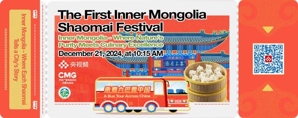 BEIJING, Dec. 22, 2024 /PRNewswire/ — As the Dongzhi (Winter Solstice) approaches, a time as significant as the New Year itself, the spirit of reunion warms the heart of Hohhot (the Green City), inviting all to a feast of flavors and culture! Join us for a grand celebration where culinary artistry meets cultural heritage! On December 21, 2024, at 10:15 AM (Beijing Time), China Media Group, in collaboration with the Inner Mongolia Autonomous Region Agriculture and Animal Husbandry Hall, proudly presents an integrated media live broadcast: “A Bus Tour Across China | Where Each Shaomai Tells a City’s Story.” Amid rising steam and anticipation, the Inaugural Inner Mongolia Shaomai Festival unfolds spectacularly extending a warm invitation to all! Each carefully crafted shaomai embodies the essence of “Inner Mongolia – Where Nature’s Purity Meets Culinary Excellence.”