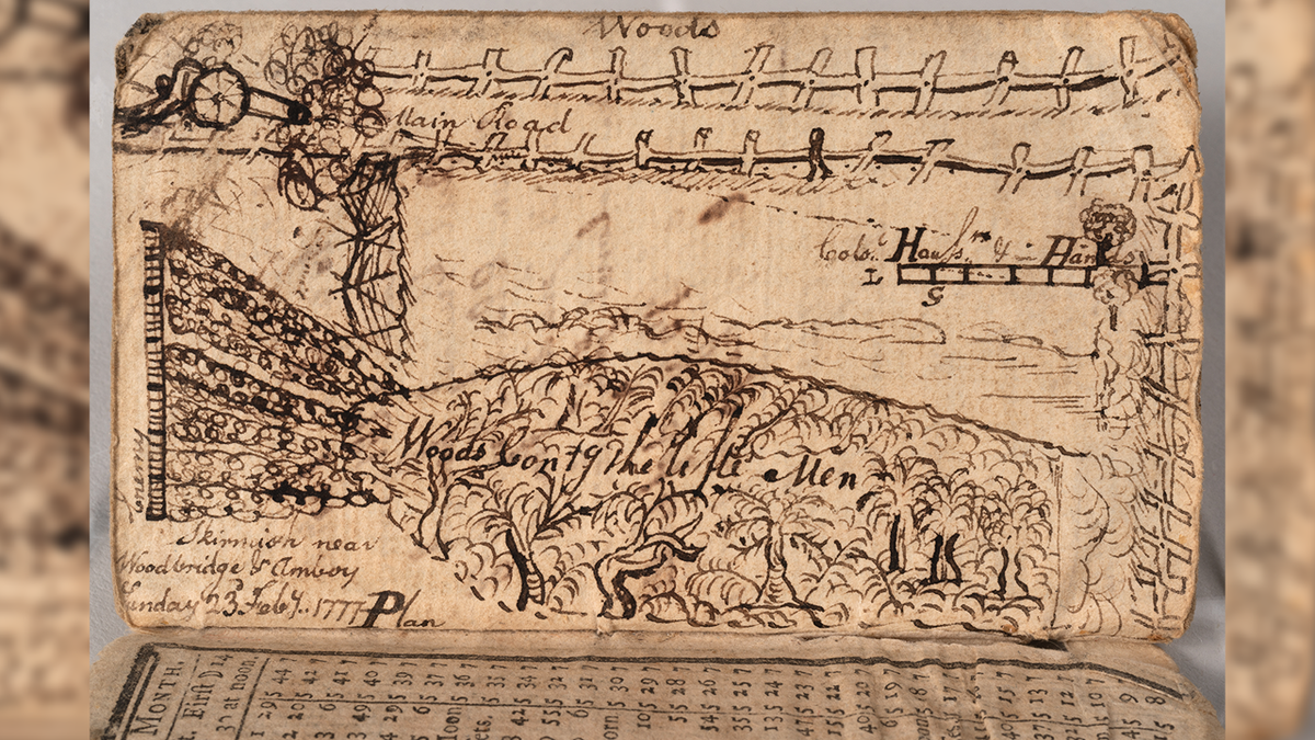 In his pocket almanac, Gerock sketched the Battle of Spanktown that took place near Woodbridge, New Jersey, Feb. 23, 1777.